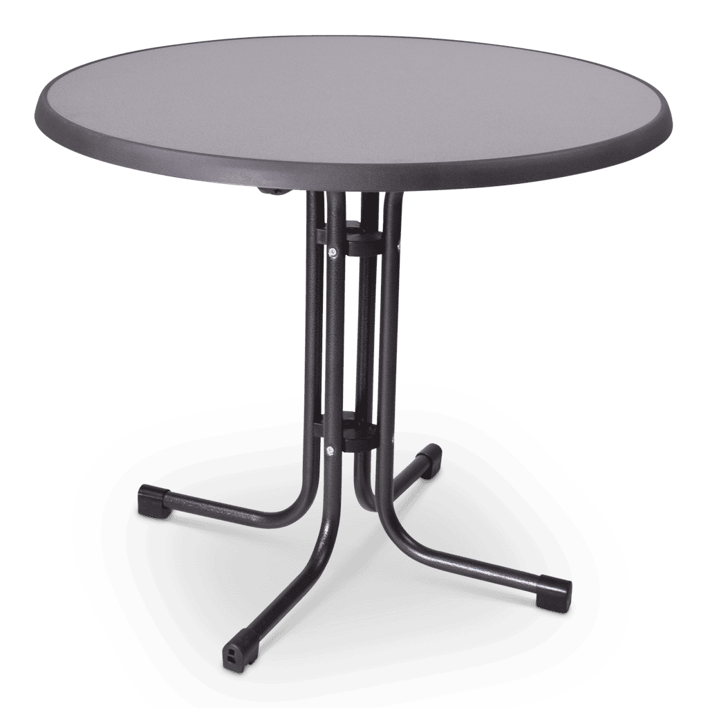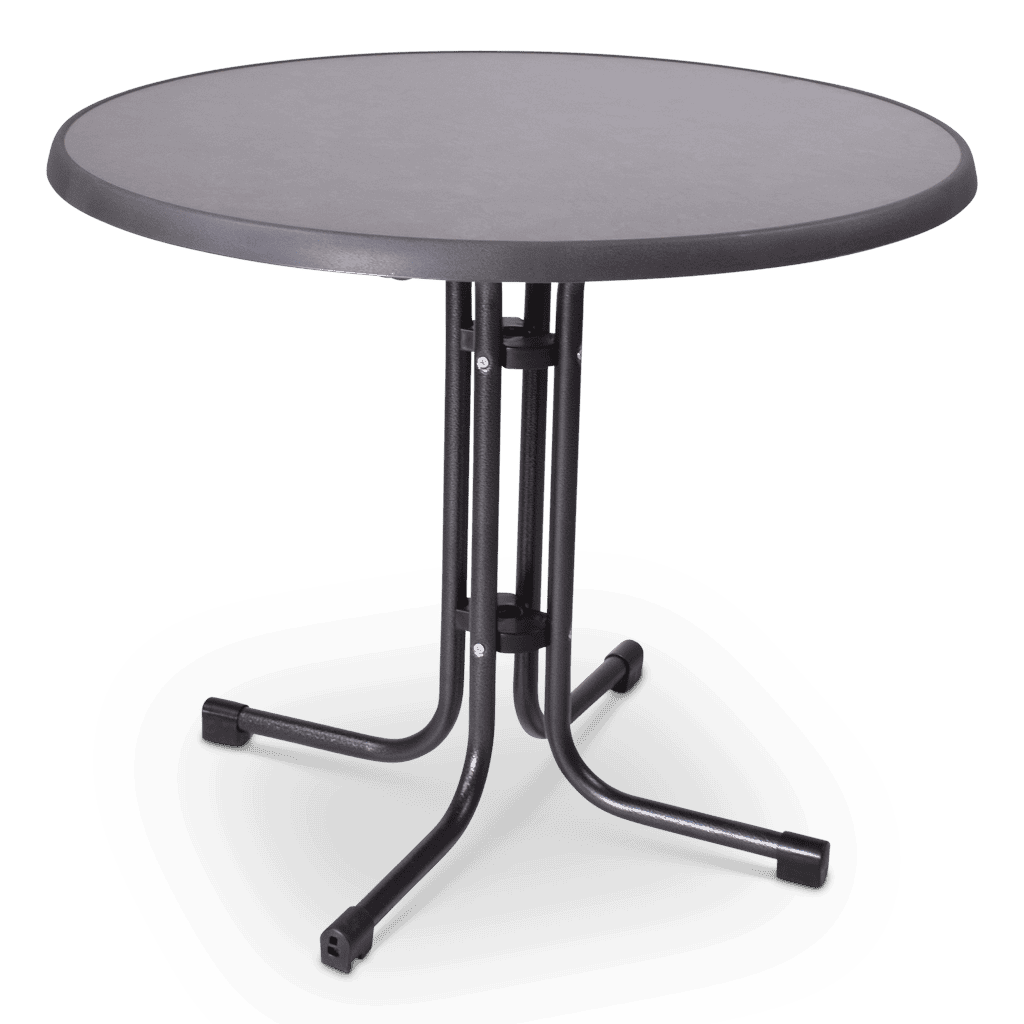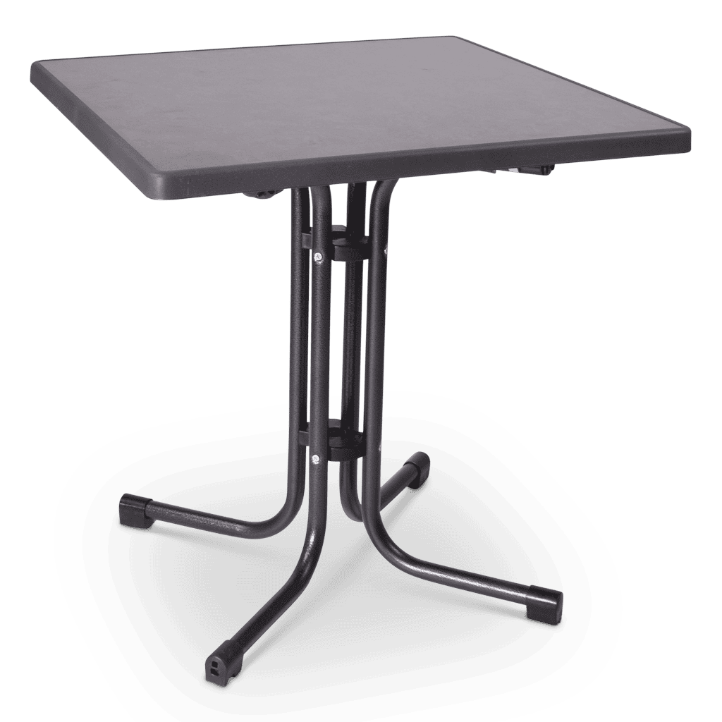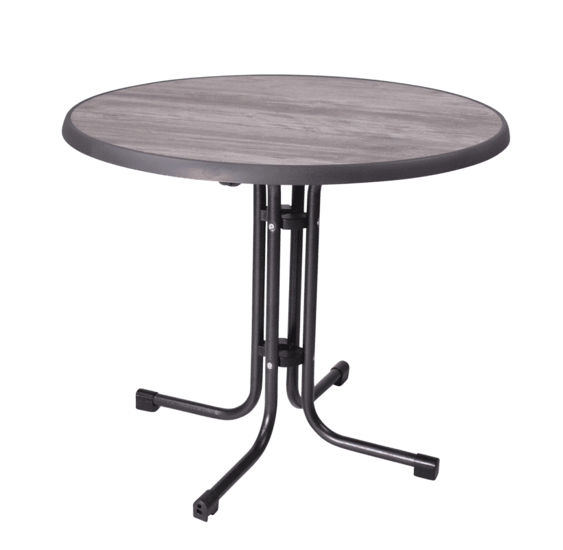 Een terras- of bistro tafel, het maakt niet uit hoe je deze tafel noemt maar deze tafel heeft wel een allerbest voordeel. Een centraal onderstel waardoor deze tafel makkelijk plaats biedt aan 4 personen. Daarnaast is het blad verkrijgbaar in 3 verschillende maten en in verschillende designs. Zo kan je zelf bepalen of je toch het vaasje met bloemen erop zet.