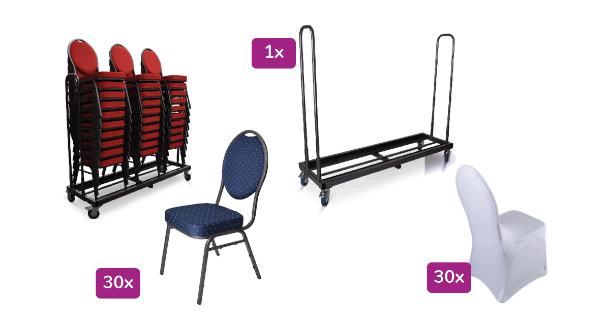 Transportkar incl. stapelstoel Maas met stretchrok 30 stuks